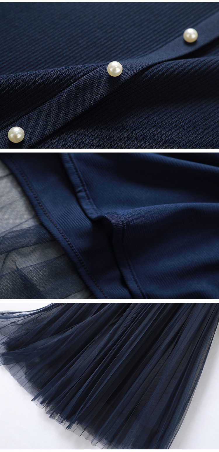 ワンピース ラウンドネック 長袖 3色選択可 ハイウエスト 切り替え Aライン お腹カバー チュール デザイン感 シンプル レトロ セクシー デイリー フェミニン 大人可愛い S~XL