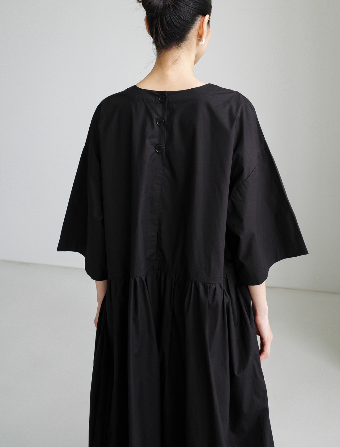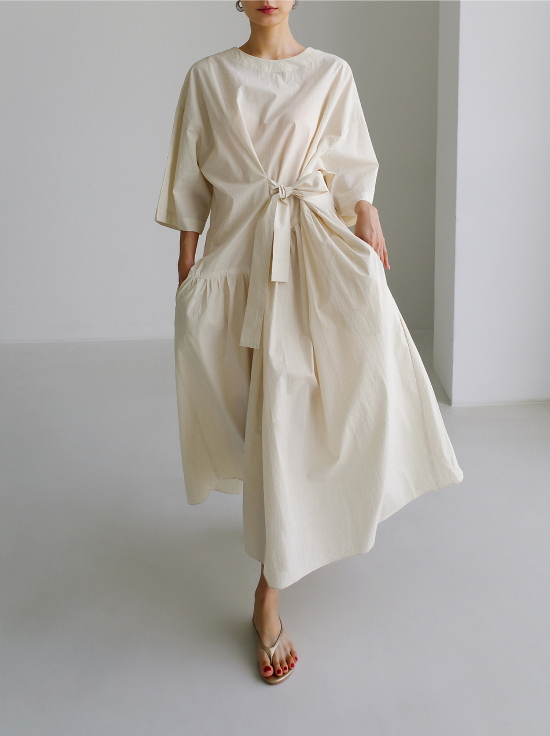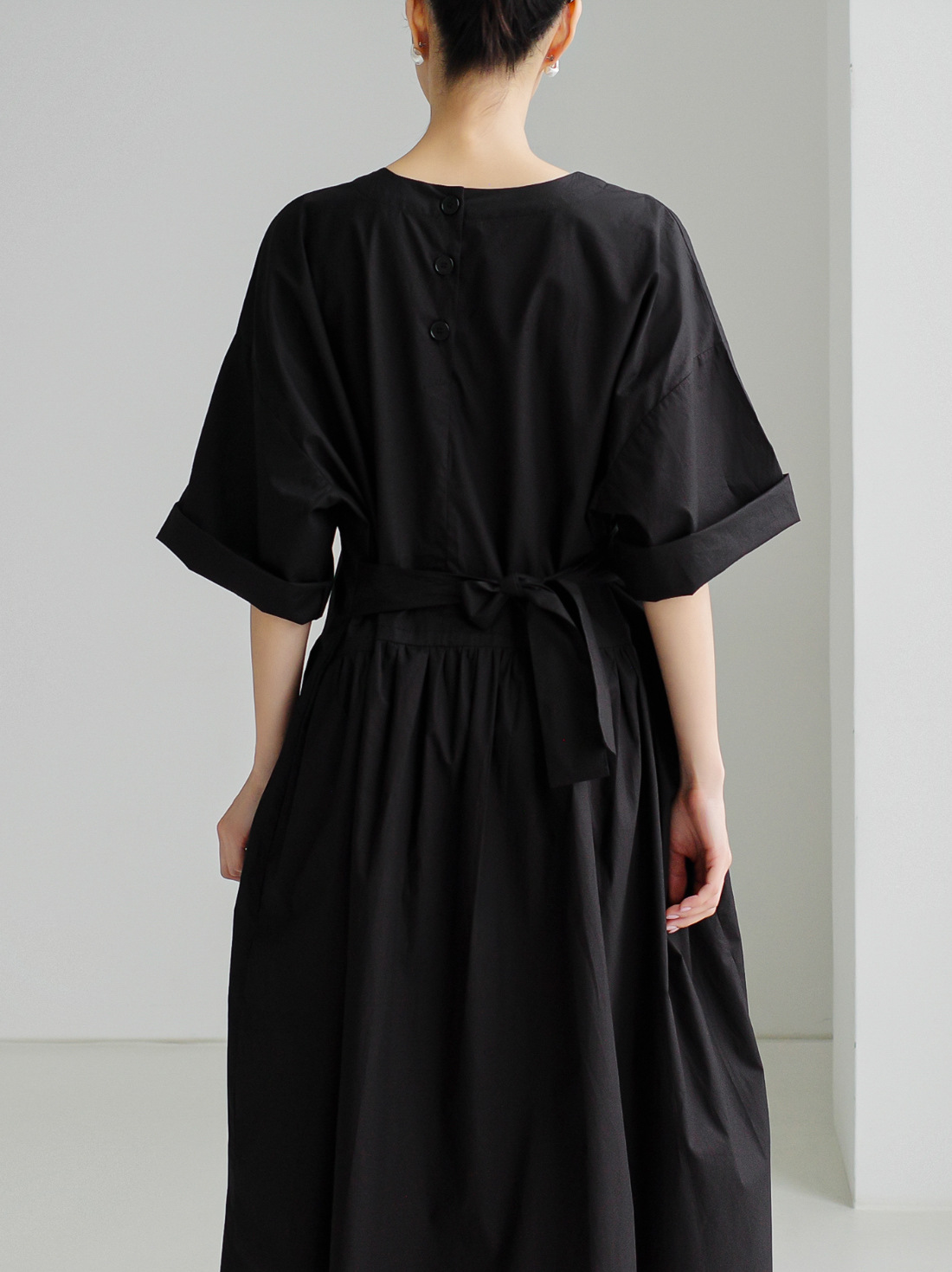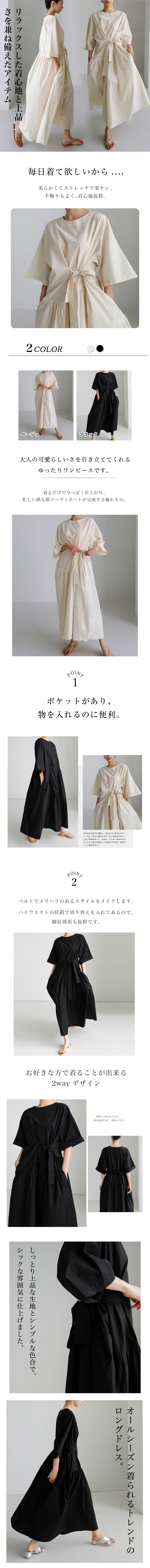 ワンピース シンプル お洒落 ルーズ ラウンドネック 半袖 無地 ハイウエスト 切り替え Aライン リボン付け ウエストゴム 大振裾 サイドポケット ギャザー 足首丈 S-XL