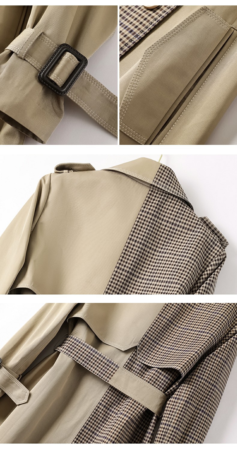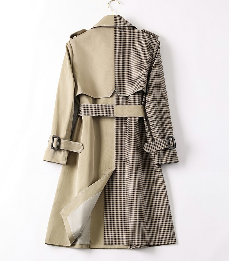 アウター トレンチコート 折り襟 長袖 ハイウエスト 切り替え チェック柄 配色 通気性 お腹カバー ウエストリボン 個性的 デイリー 高級感 ゆったり 大人気 M~XXL