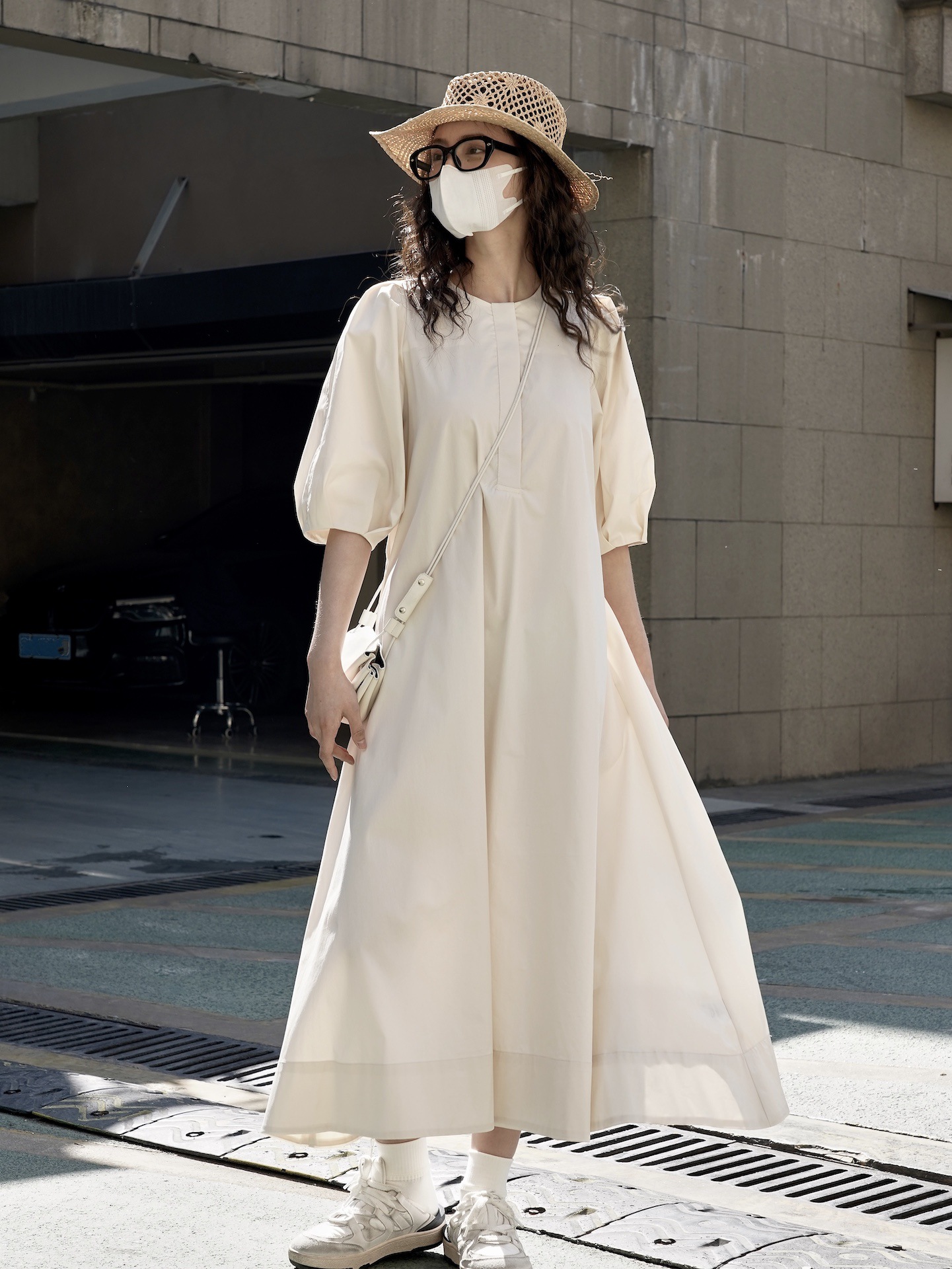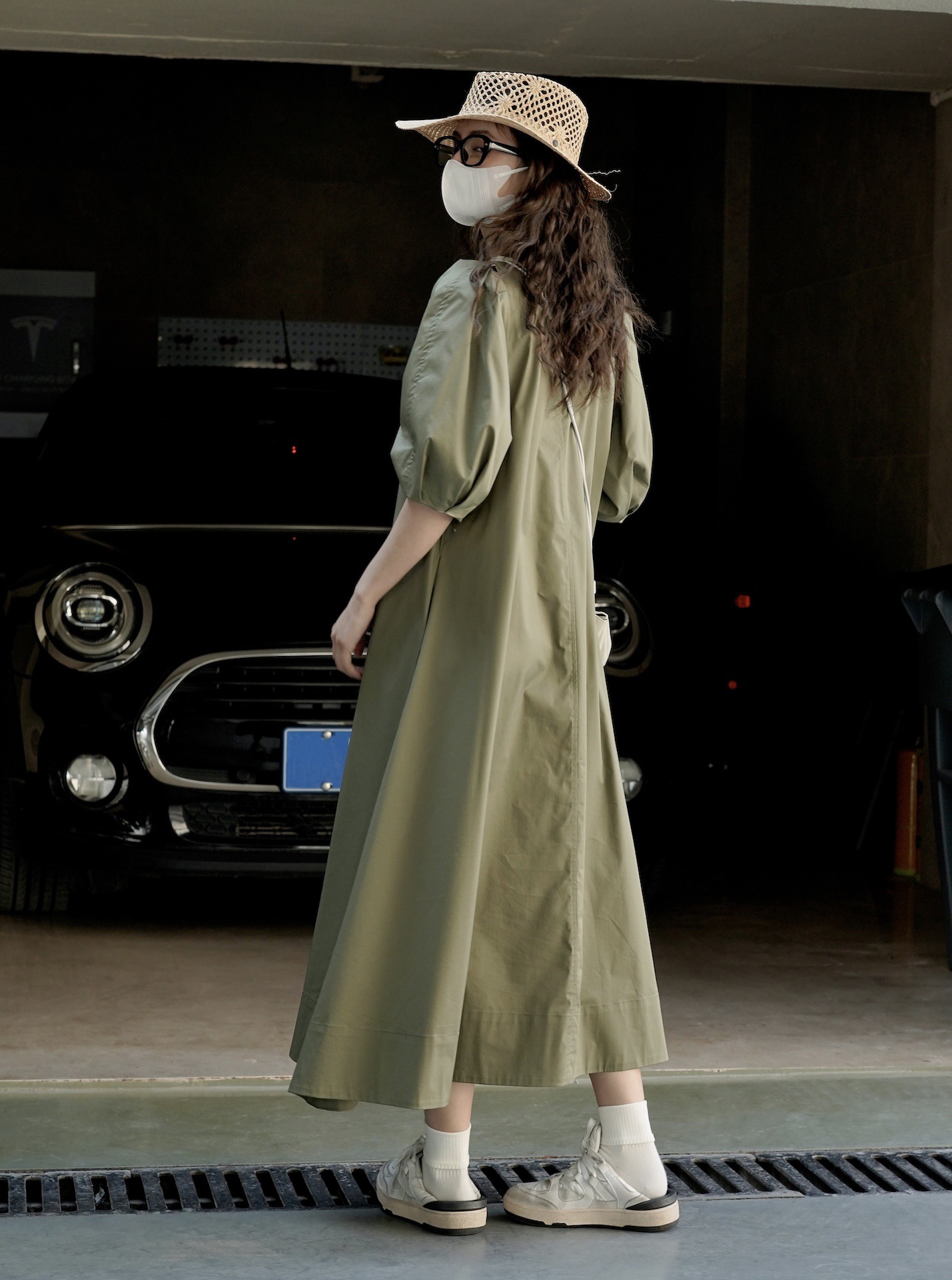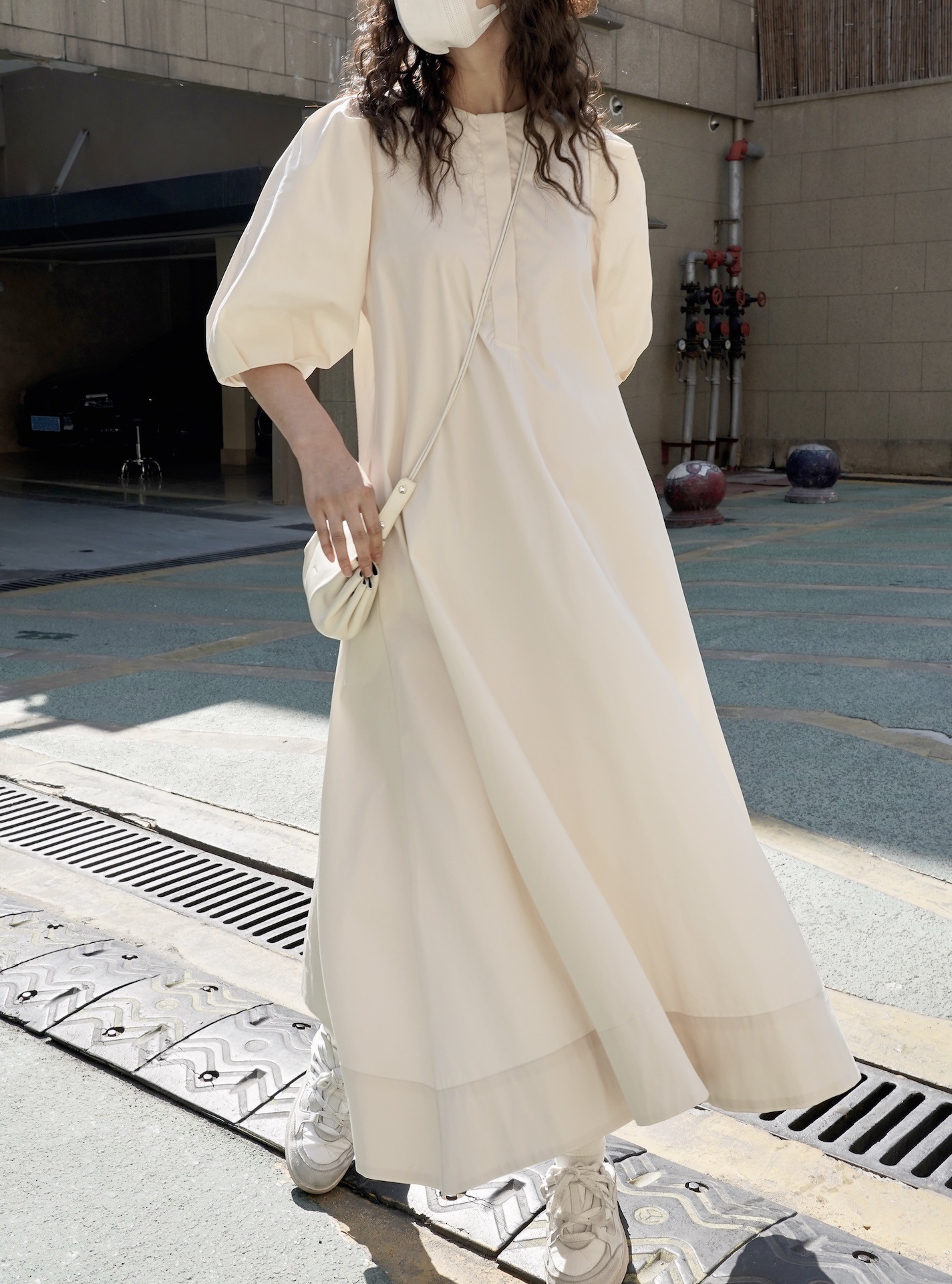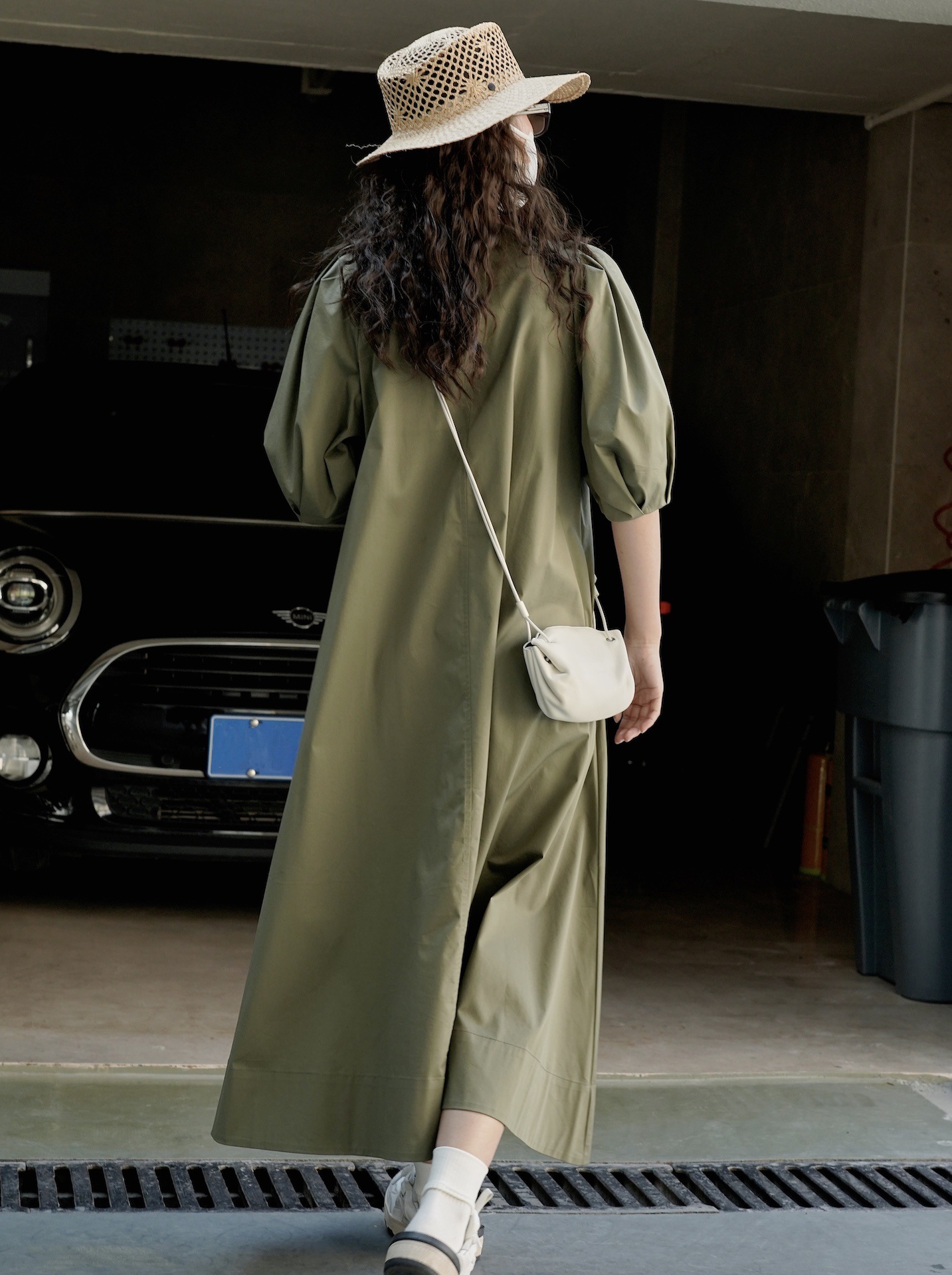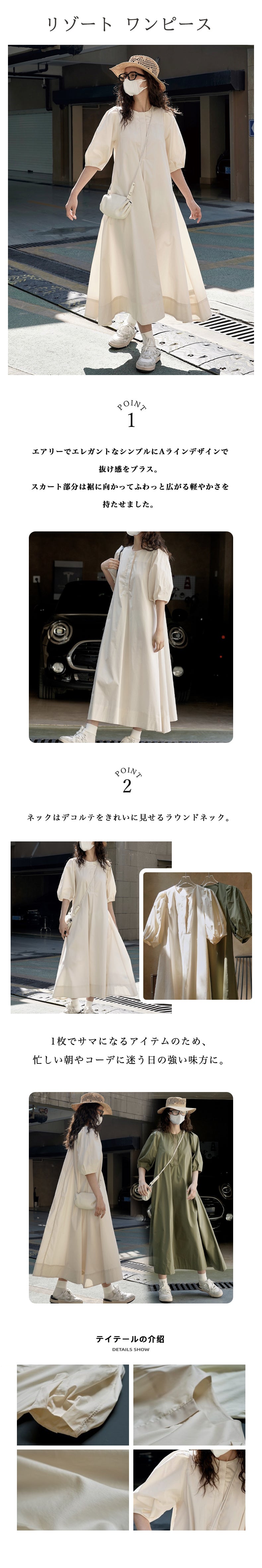 リゾート パフスリーブ 2色選択可 ロングワンピース M~L