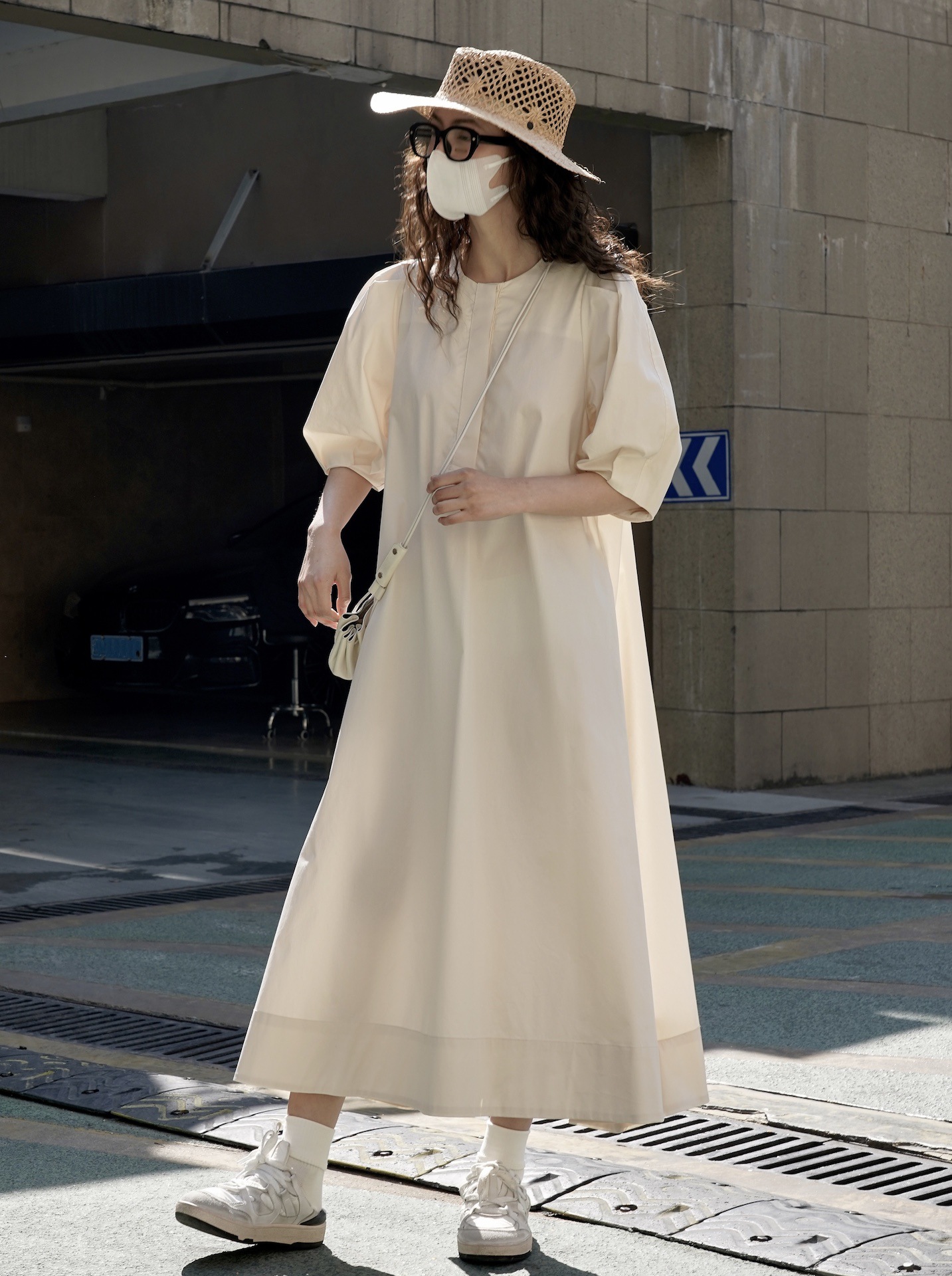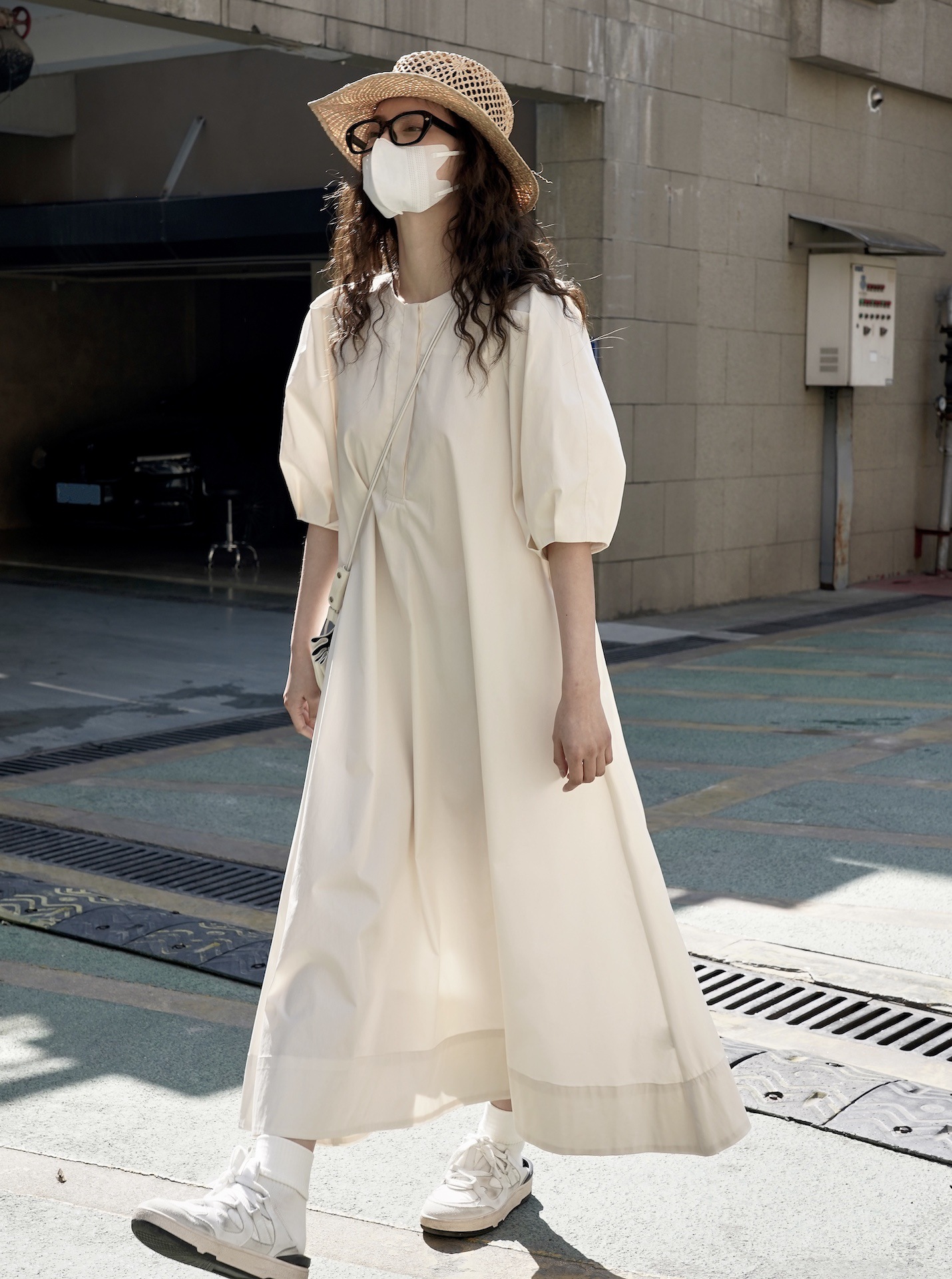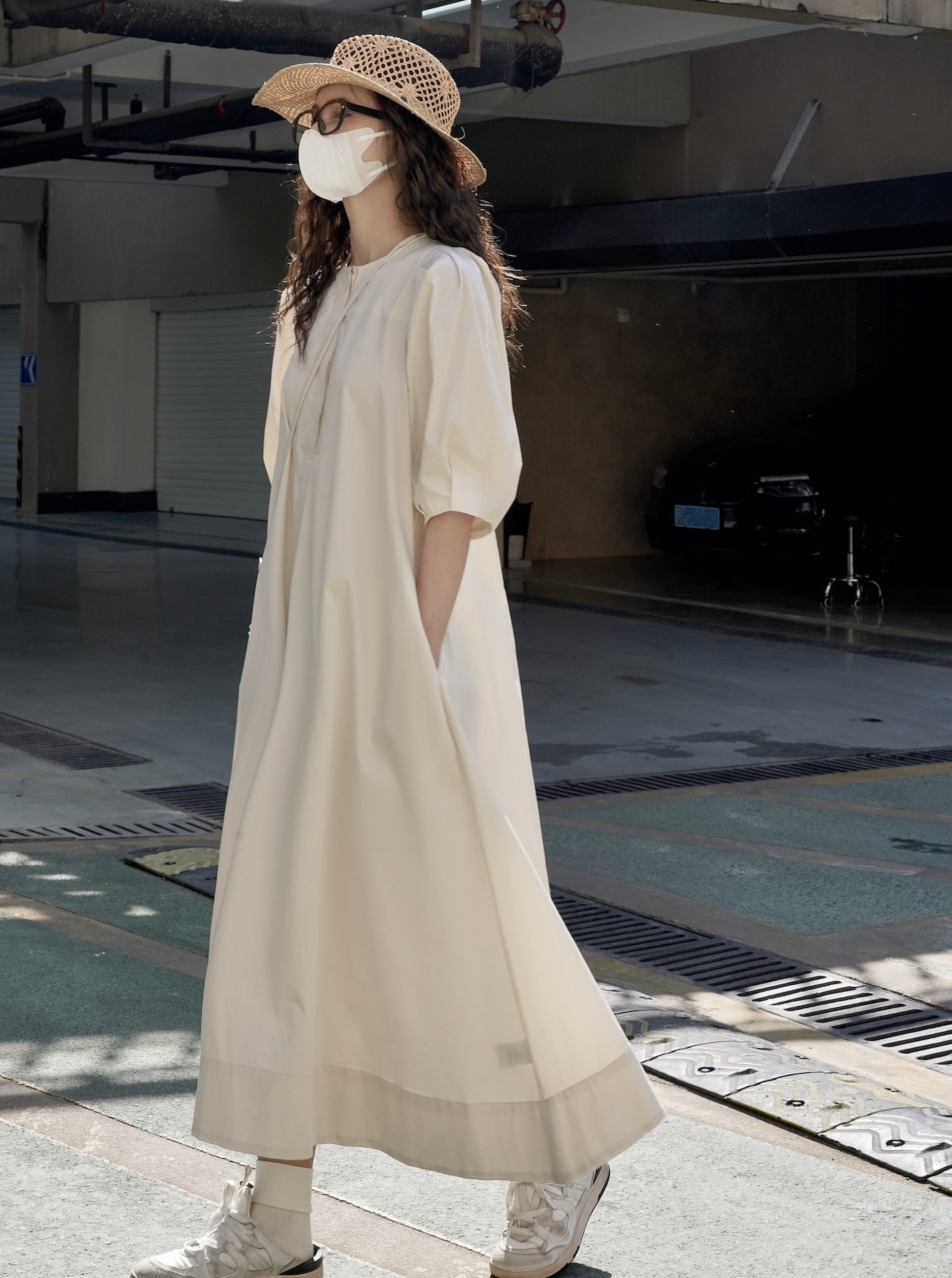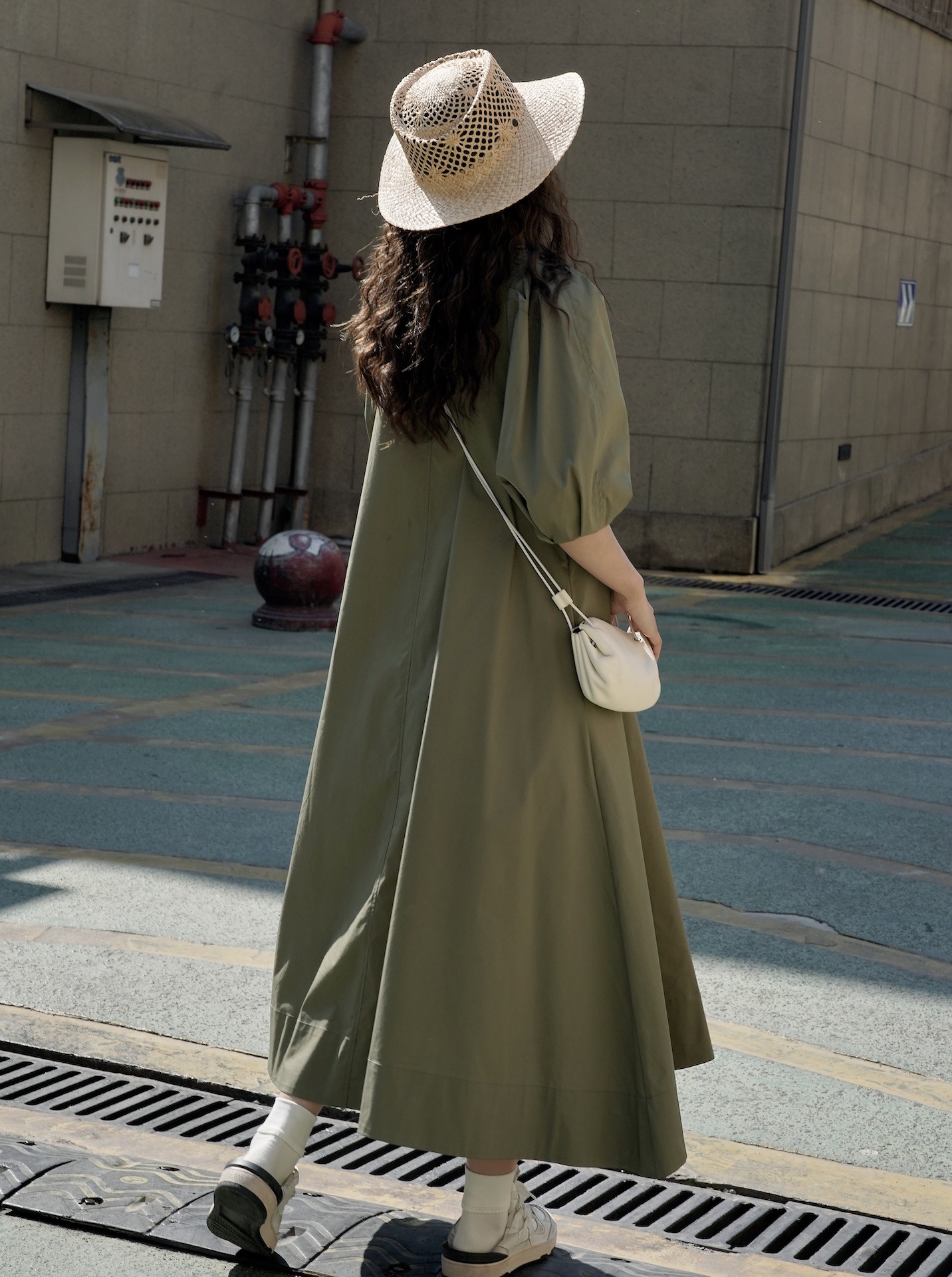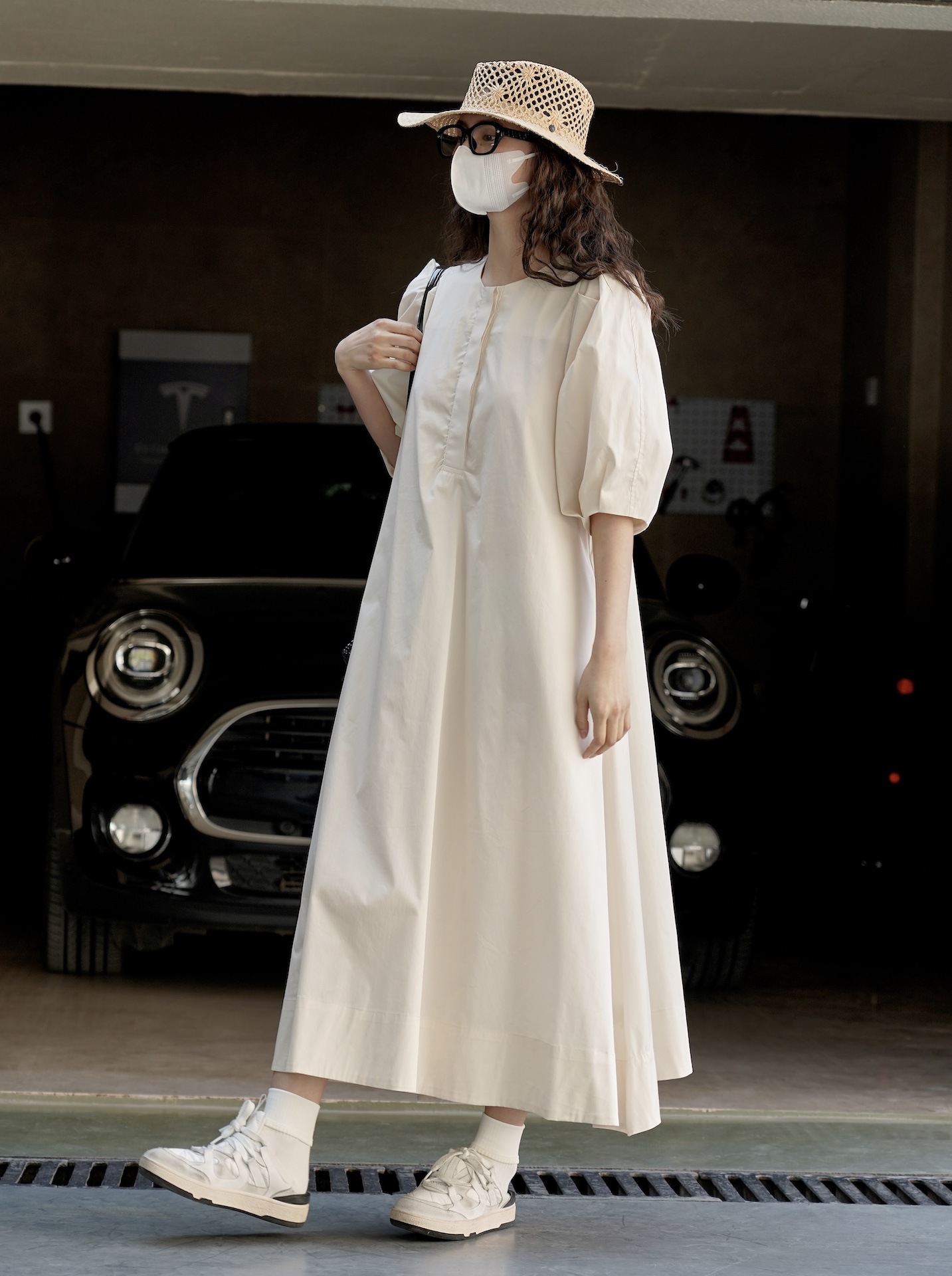 リゾート パフスリーブ 2色選択可 ロングワンピース M~L
