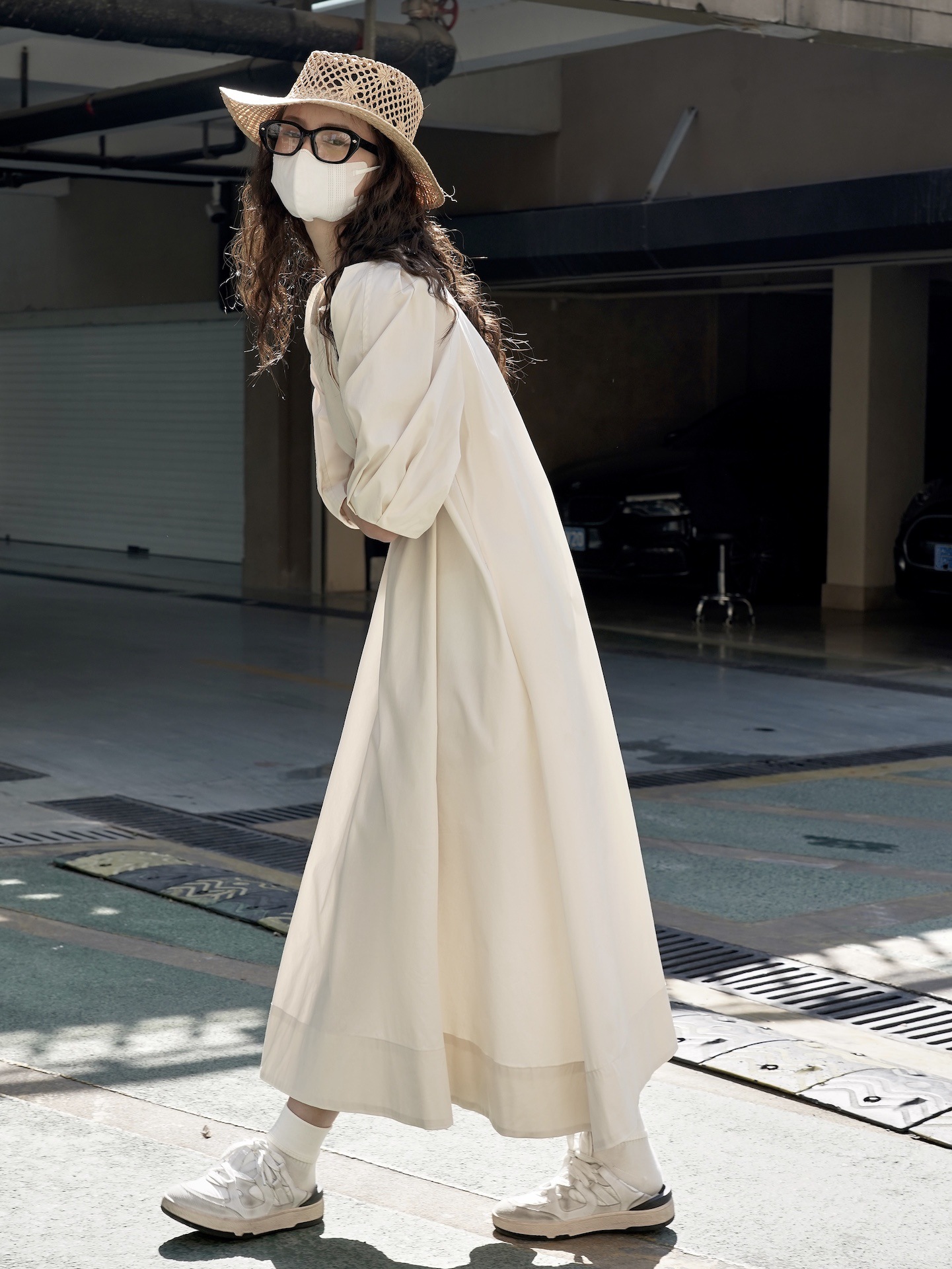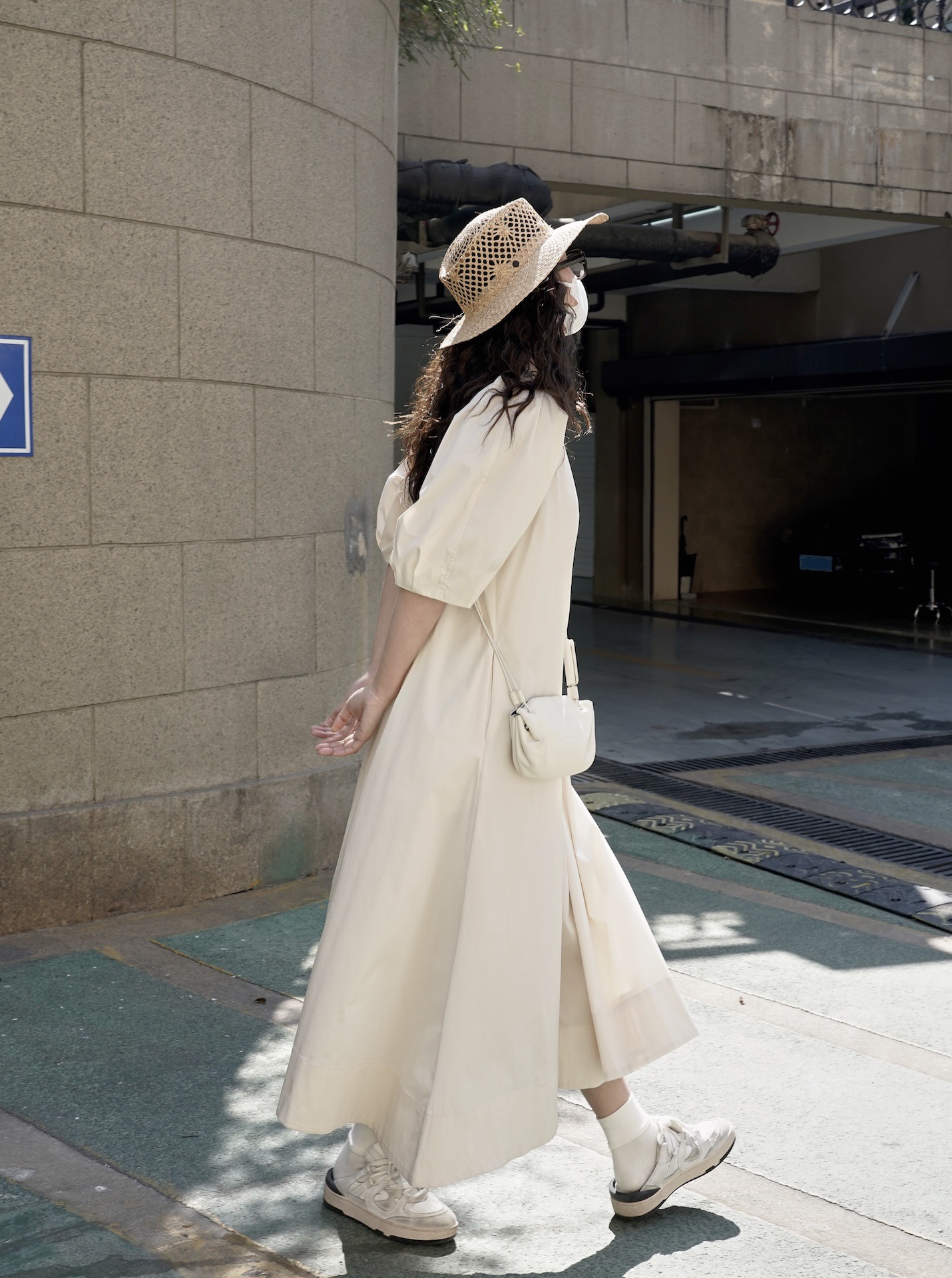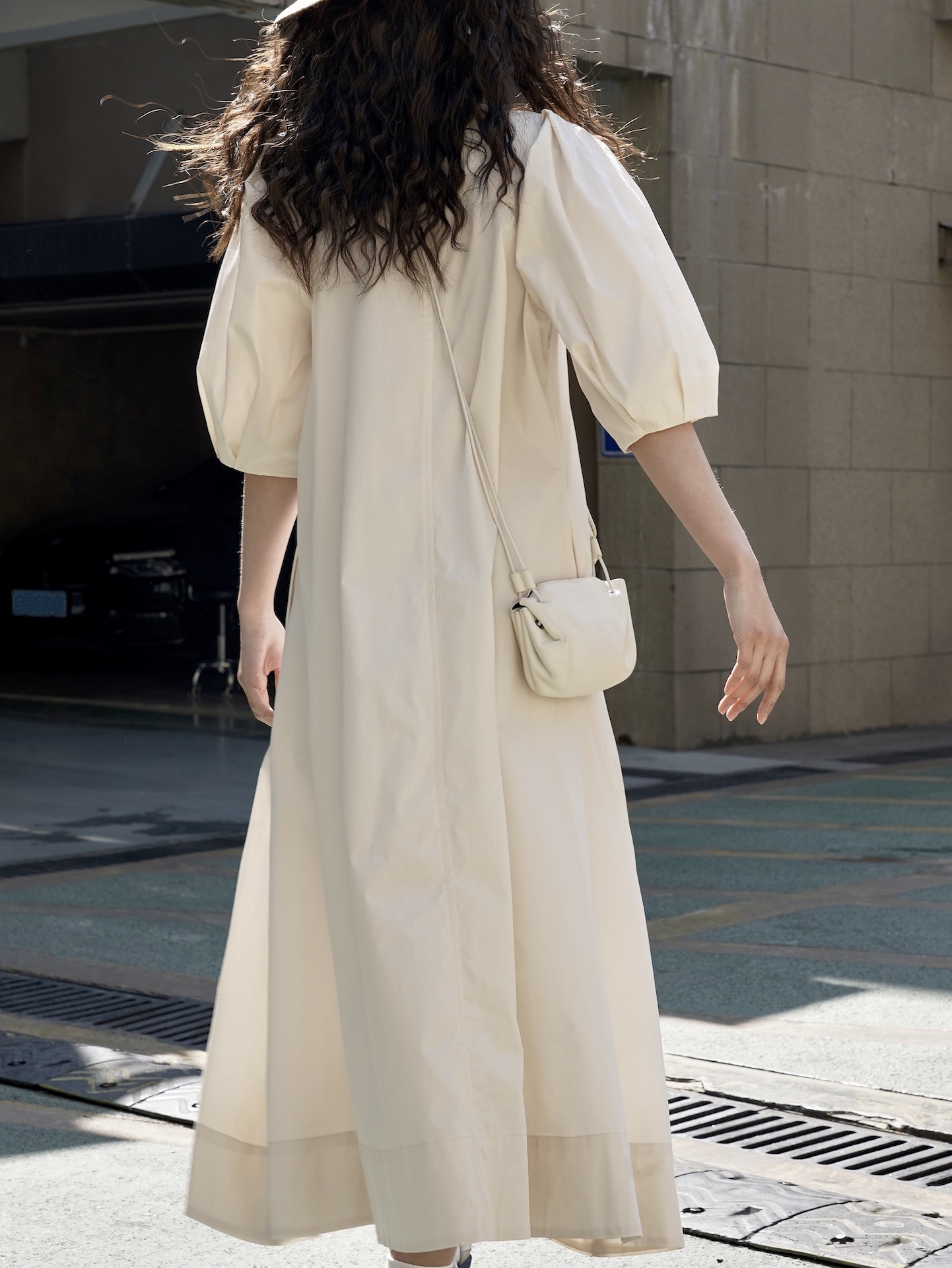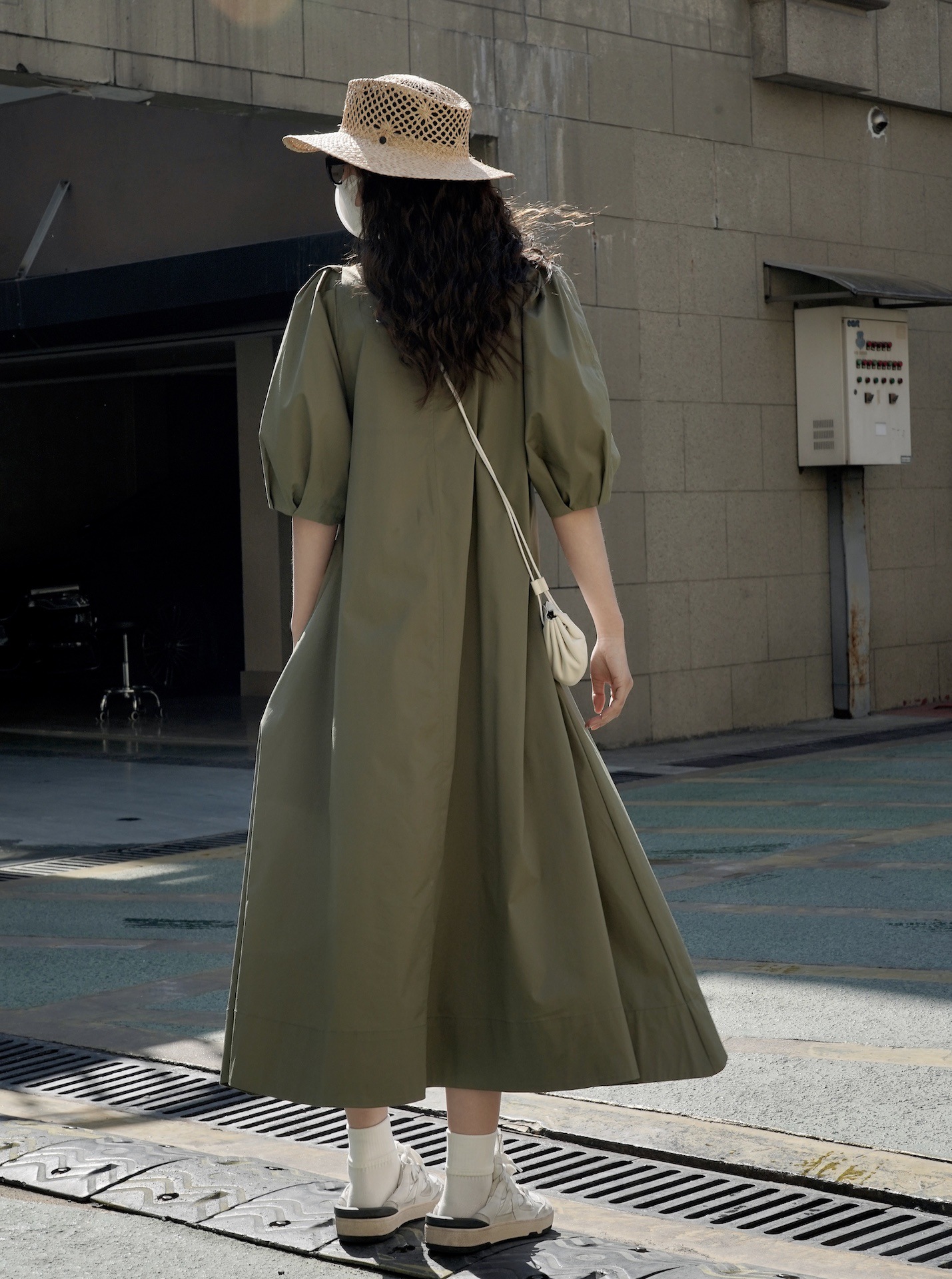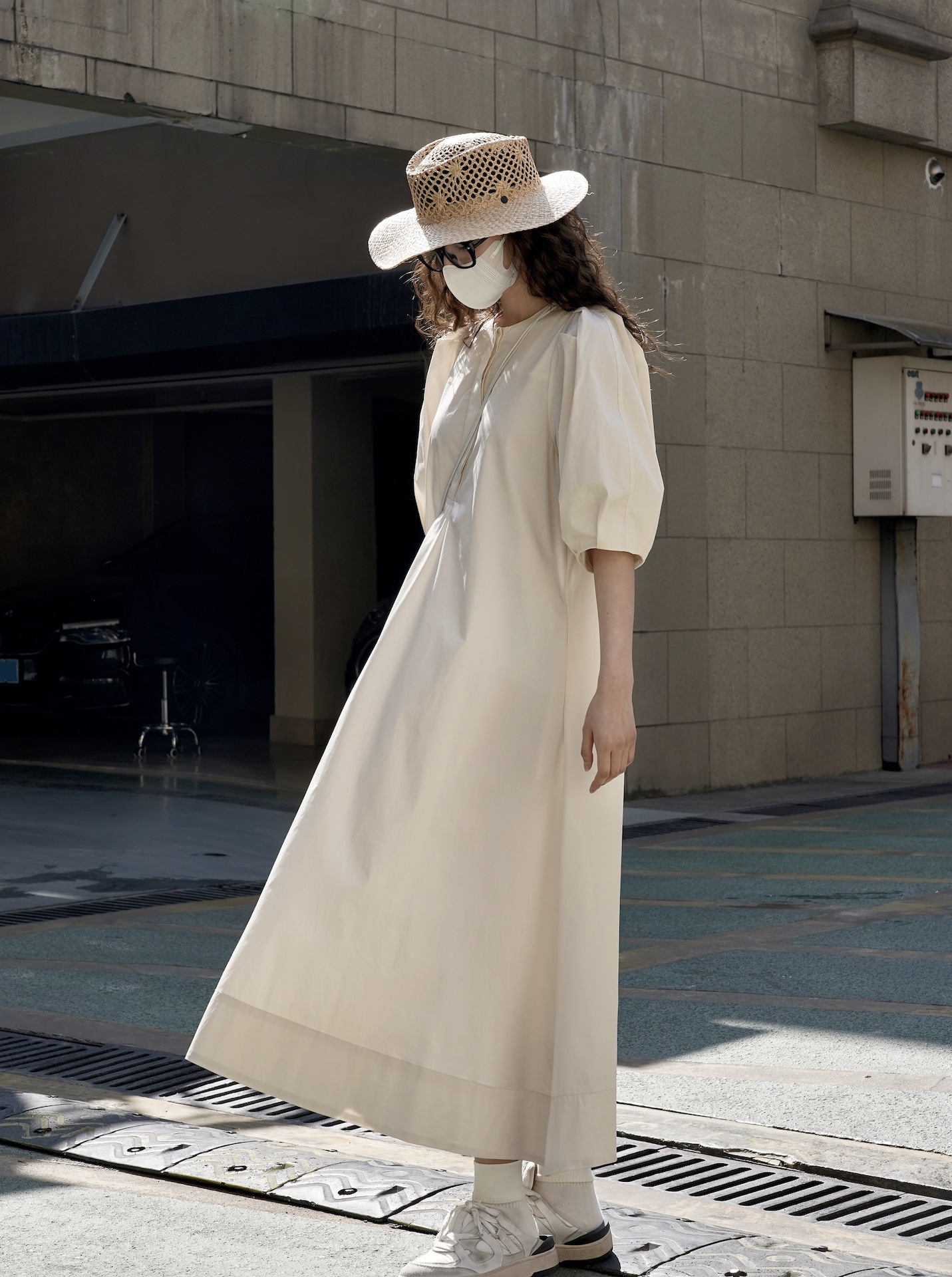 リゾート パフスリーブ 2色選択可 ロングワンピース M~L