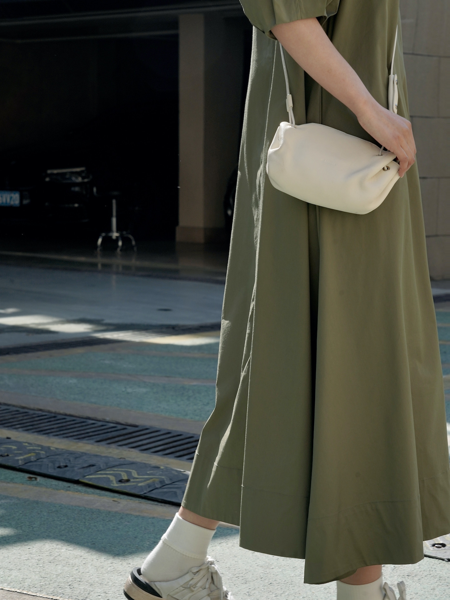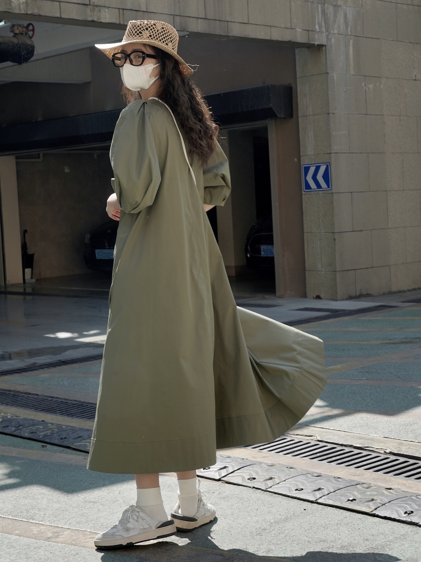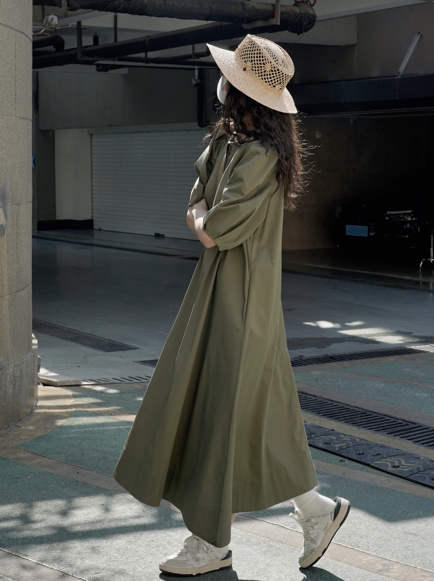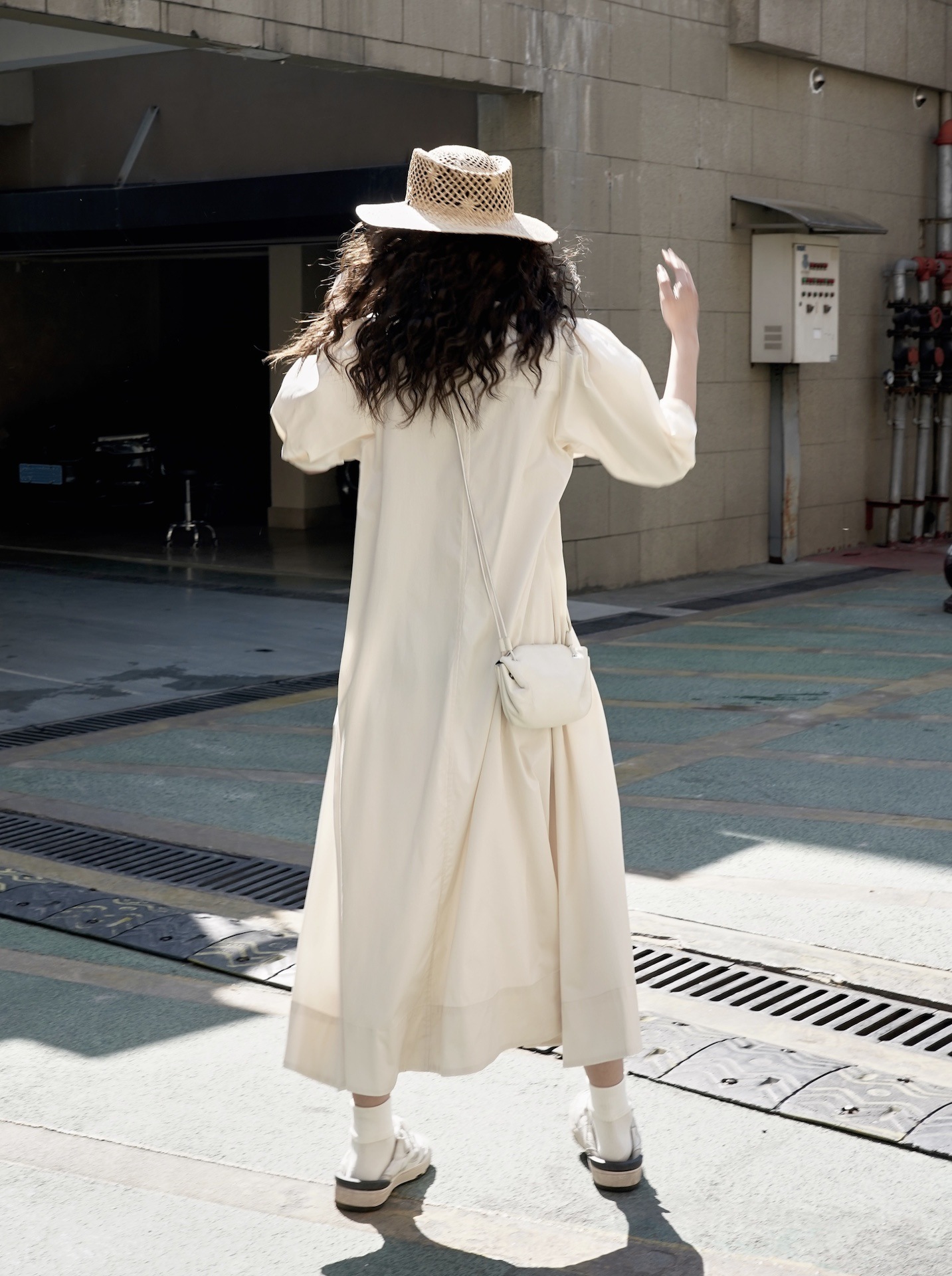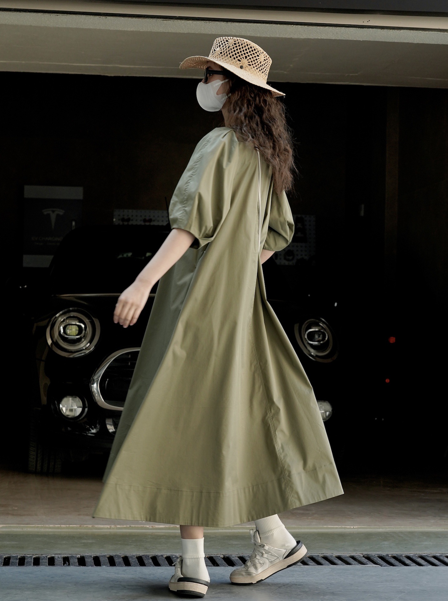 リゾート パフスリーブ 2色選択可 ロングワンピース M~L