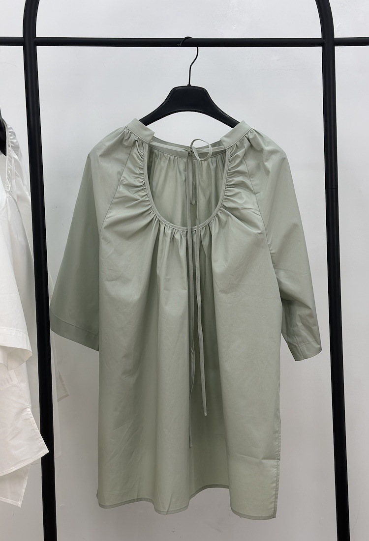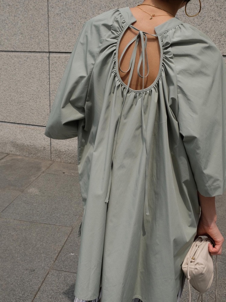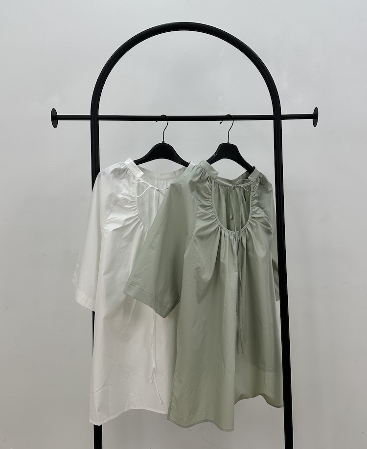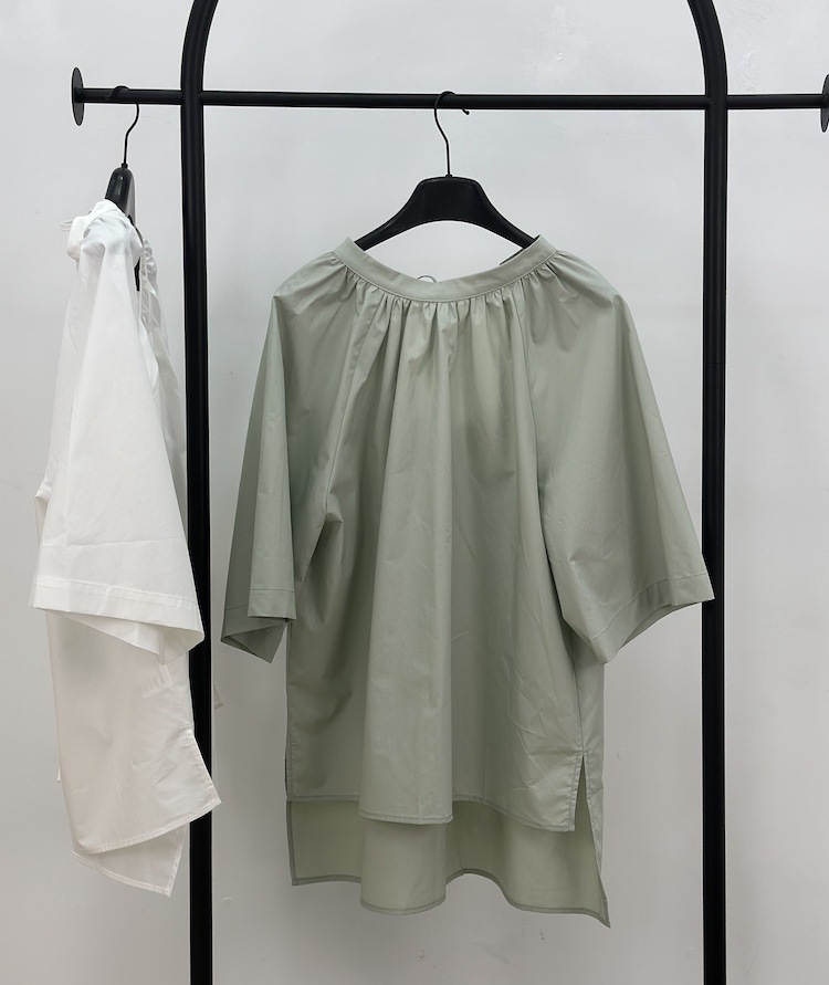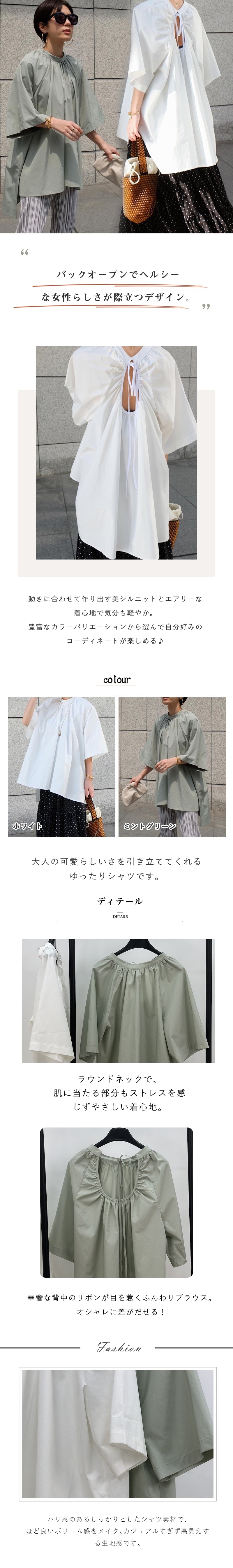 シャツ カジュアル デイリー ゆったり感アップ 女性らしい ラウンドネック ラグランスリーブ 半袖 無地 切り替え 通気性 背中開き 非対称 大振裾 サイドスリット バックレス ギャザー S-L